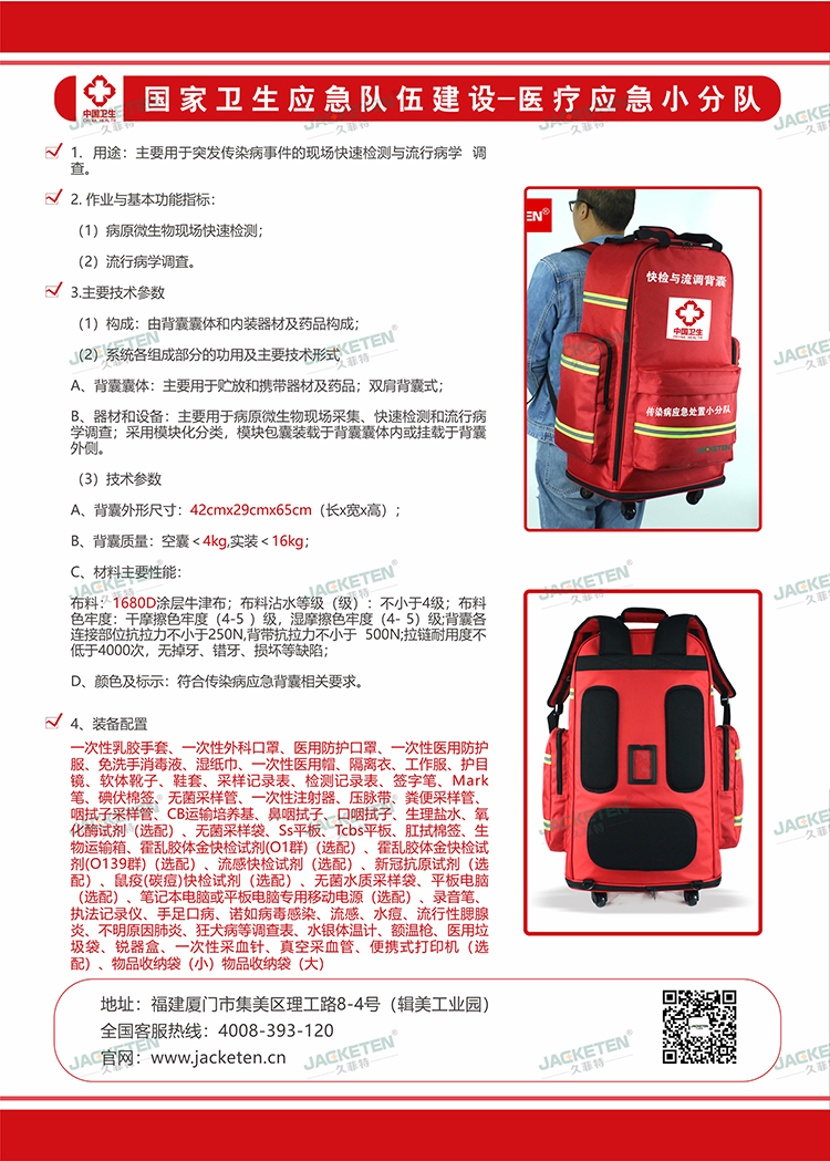 主營產(chǎn)品: 急救背囊,應(yīng)急救援包,急救箱包廠家