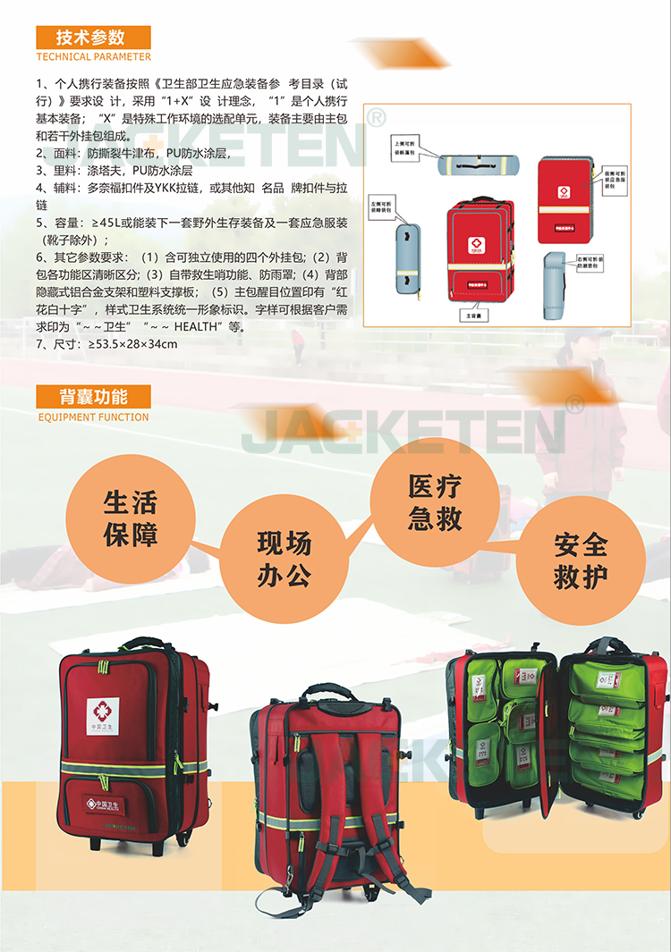 主營產(chǎn)品: 急救背囊,應(yīng)急救援包,急救箱包廠家